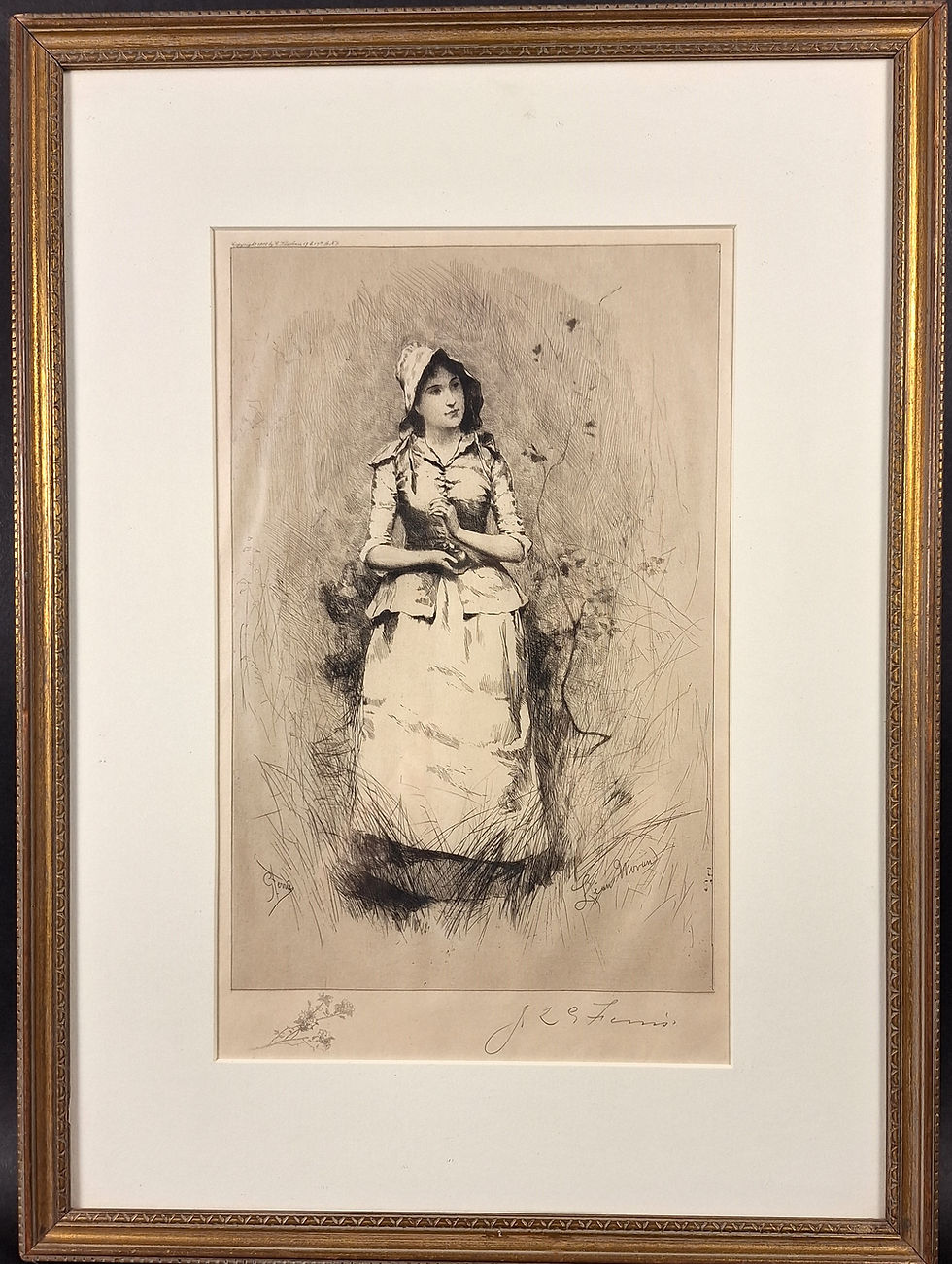 Item # 248, ETCHING OF YOUNG MAIDEN HOLDING FRUIT: